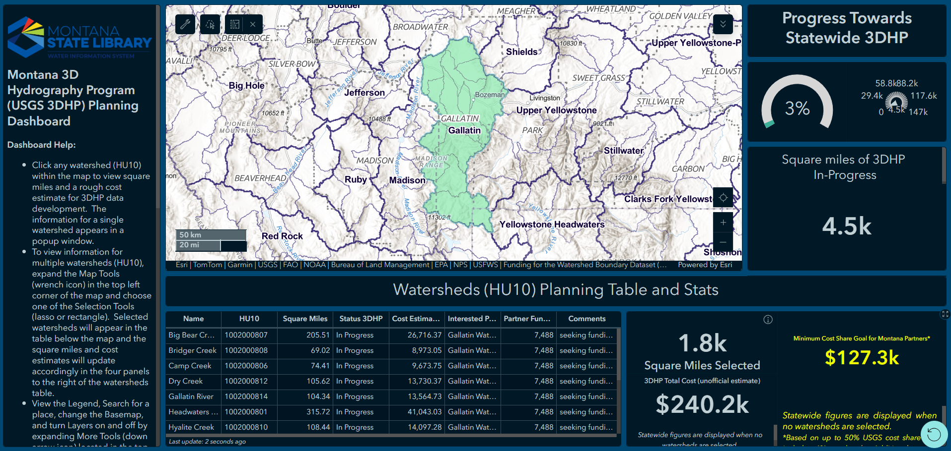 In 2024, the Gallatin Water Collaborative formed the Watercourse Mapping Working Group to apply to the USGS 3D Hydrography Program and raise matching funds. By the end of 2025, the group secured $111,000 and submitted an application to map the entire Gallatin Watershed. This January, the group learned the application was successful, securing an additional $130,000 cost-share from the USGS. Mapping will begin in the spring of 2026.
